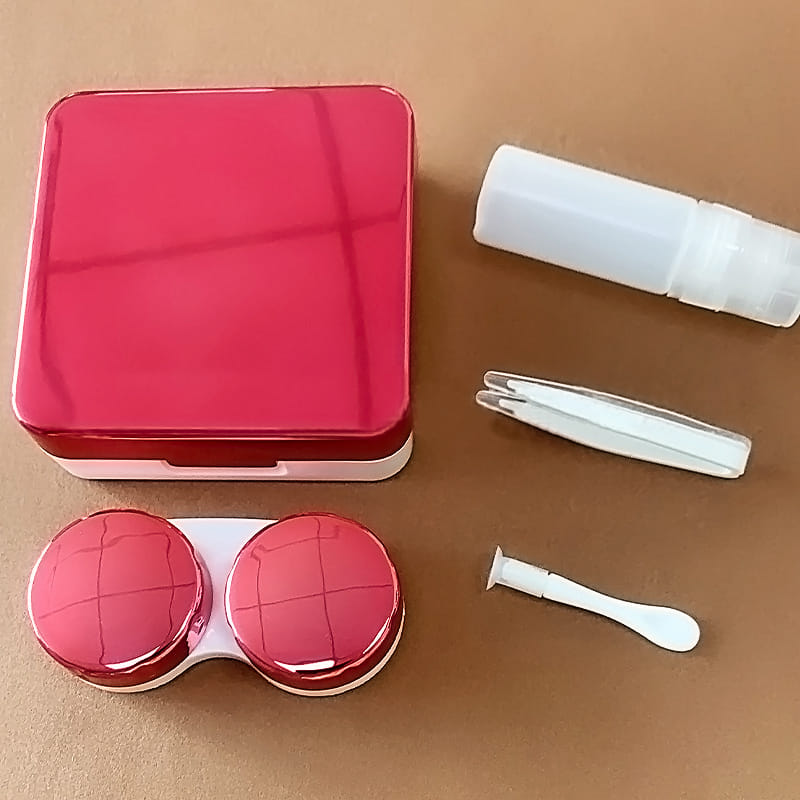 This Contact Lens Kit includes a contact lens storage case, a contact lens applicator, a pair of tweezers, a mirror and a cleaning solution bottle (solution not included).